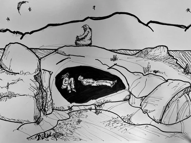 I saw the light of dawn peeking through the little cracks of the cave walls and crawled over to the door flap that had come slightly open with the wind, wanting to be certain it wasn’t moonlight I was seeing. I had to orient myself to come out of this disorienting divine night and find it in me to greet the day and small communion of people who would be waiting for me. I was ready to come out of the cave, but felt ragged with how I hardly knew myself for what had just happened.